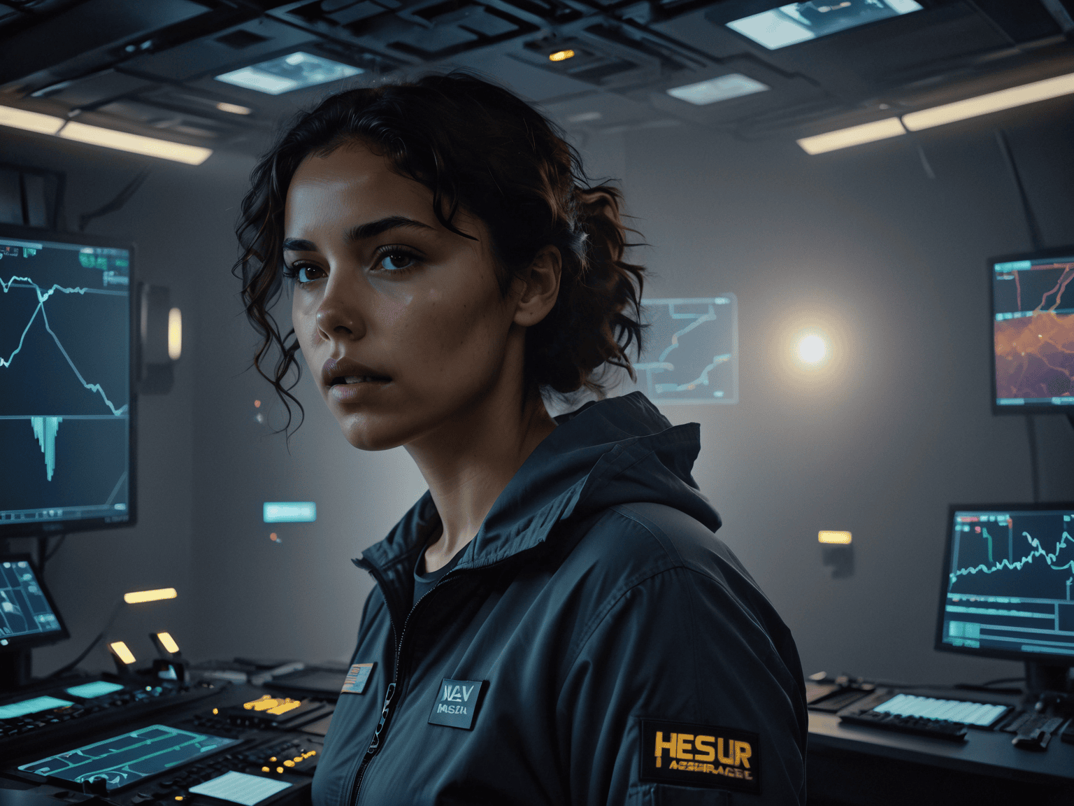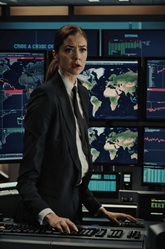 Magna se incorpora desde su estación con esa determinación que caracteriza cada decisión bajo presión. Sus ojos color avellana reflejan las pantallas de monitoreo industrial mientras sus dedos vuelan sobre controles que mapean infraestructura crítica en tiempo real.